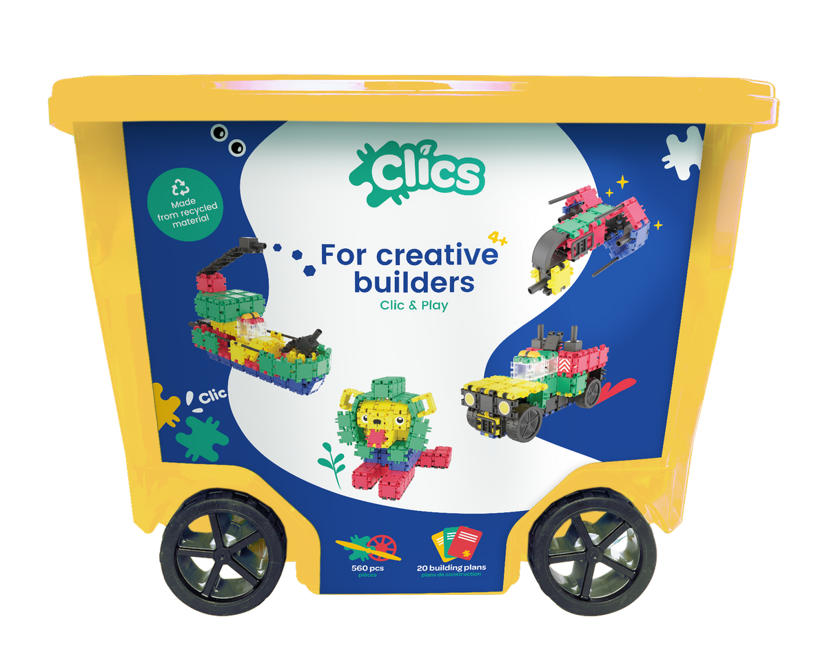 Clics Roller 20w1 to 560 klocków w dużym rollerze! Zbuduj 20 różnych modeli. Opakowanie z kółkami idealne na prezent. Zabawka edukacyjna dla ambitnych konstruktorów.