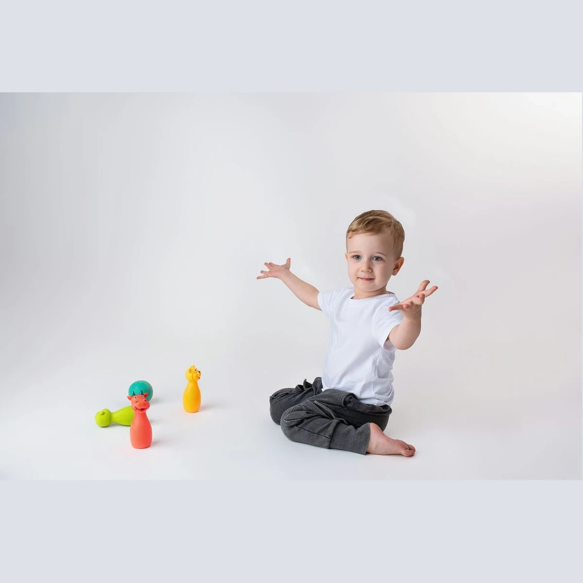 Miękkie kręgle pozwalają na bezpieczną aktywną zabawę w domu.