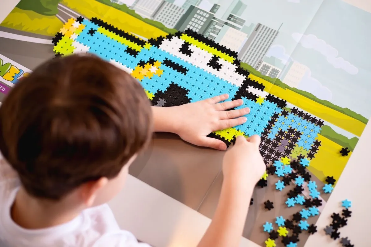 Meli Minis Speed 2w1 to tematyczny zestaw polskich klocków puzzlowych z planszami do budowy dwóch szybkich pojazdów.