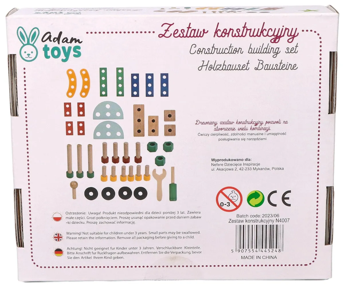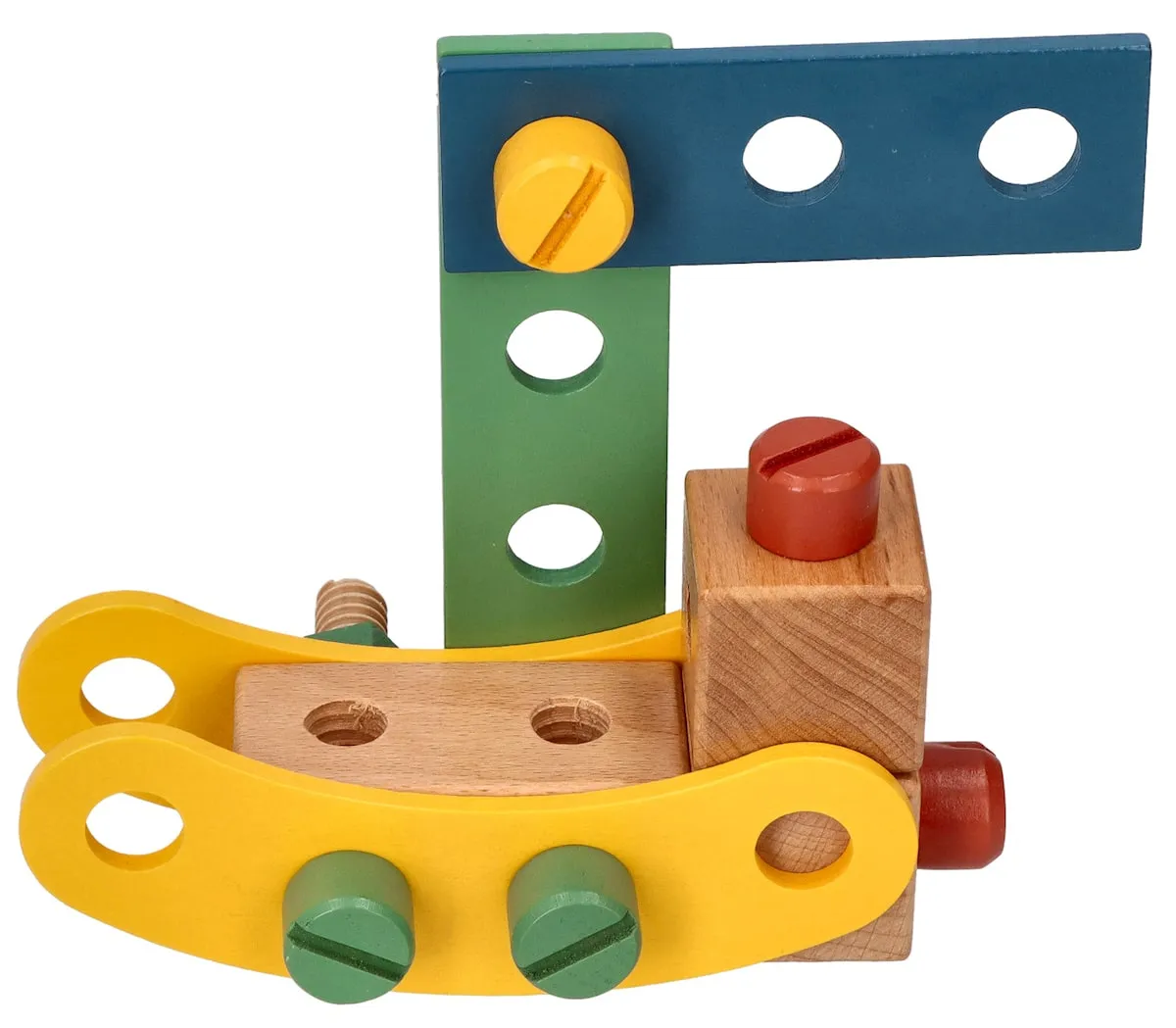 Drewniany Zestaw Konstruktora to warsztat dla małego majsterkowicza – skręcaj, buduj, twórz jak tata.