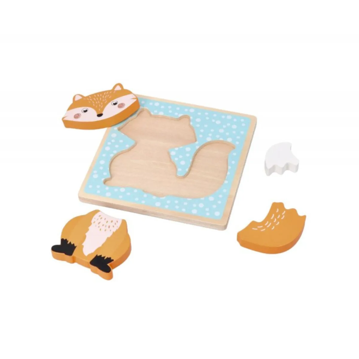 Ta urocza lisica tylko czeka aby zaprosić Twojego malucha do fascynującego leśnego świata! Drewniana układanka w formie podstawy oraz 4 wyjmowanych puzzli. Doskonała rozwojowa zabawka dla dzieci od 12 miesiąca. Idealny prezent dla dziecka.