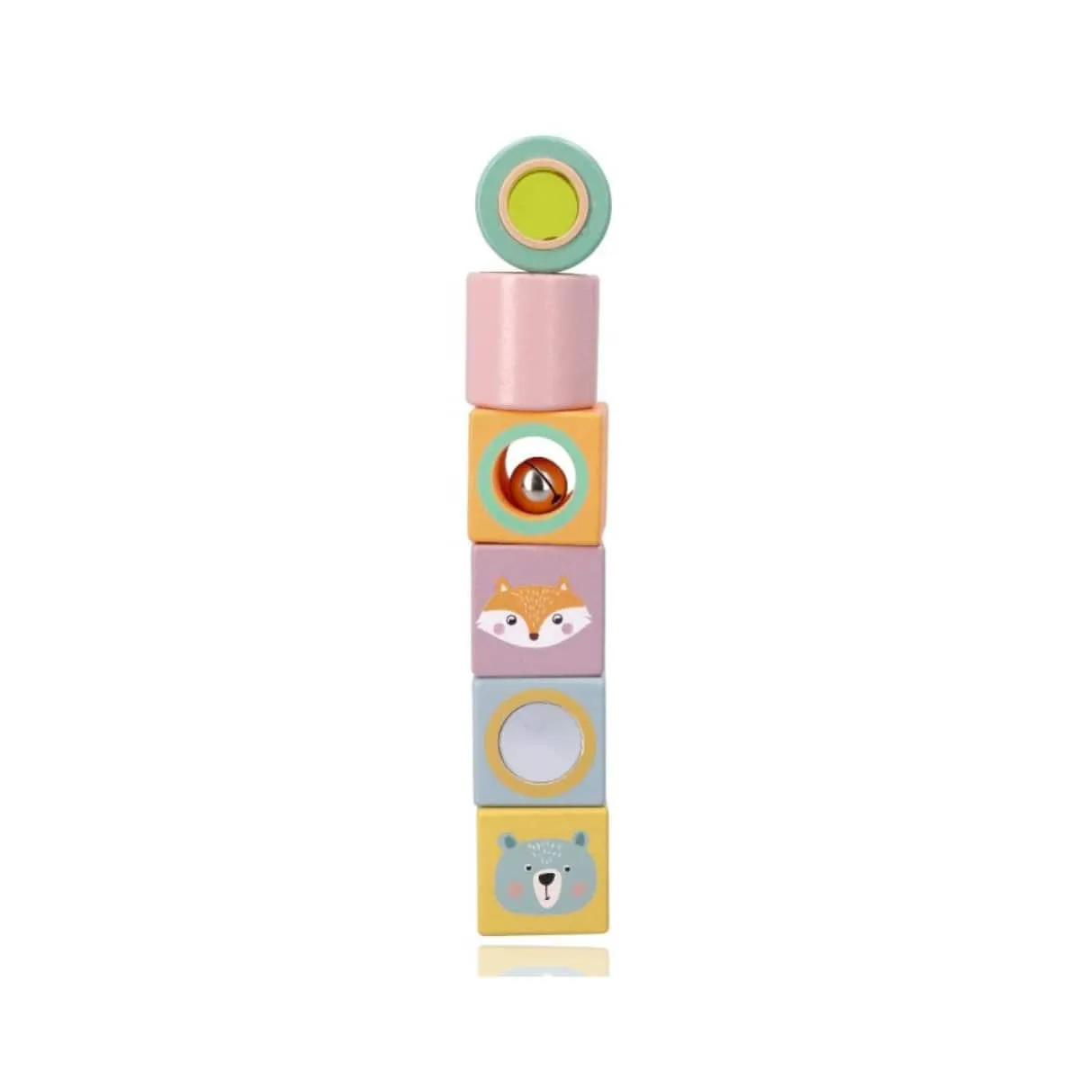 Zestaw pierwszych klocków dla malucha. Komplet zawiera 6 drewnianych elementów z niespodzianką w środku. Zabawa tymi klockami to wspaniała sensoryczna i rozwijająca podróż dla dzieci od 12 miesiąca życia. Całość zapakowana w pudełko - idealne na prezent.