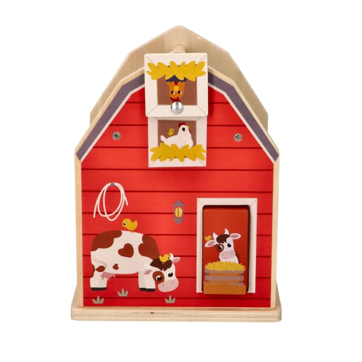 Ten starannie wykonany drewniany sorter łączy naukę rozpoznawania kształtów z poznawaniem zwierząt wiejskich. Kolorowe figurki krowy, świni, kury i innych mieszkańców farmy muszą znaleźć swoje miejsca w odpowiednich otworach.