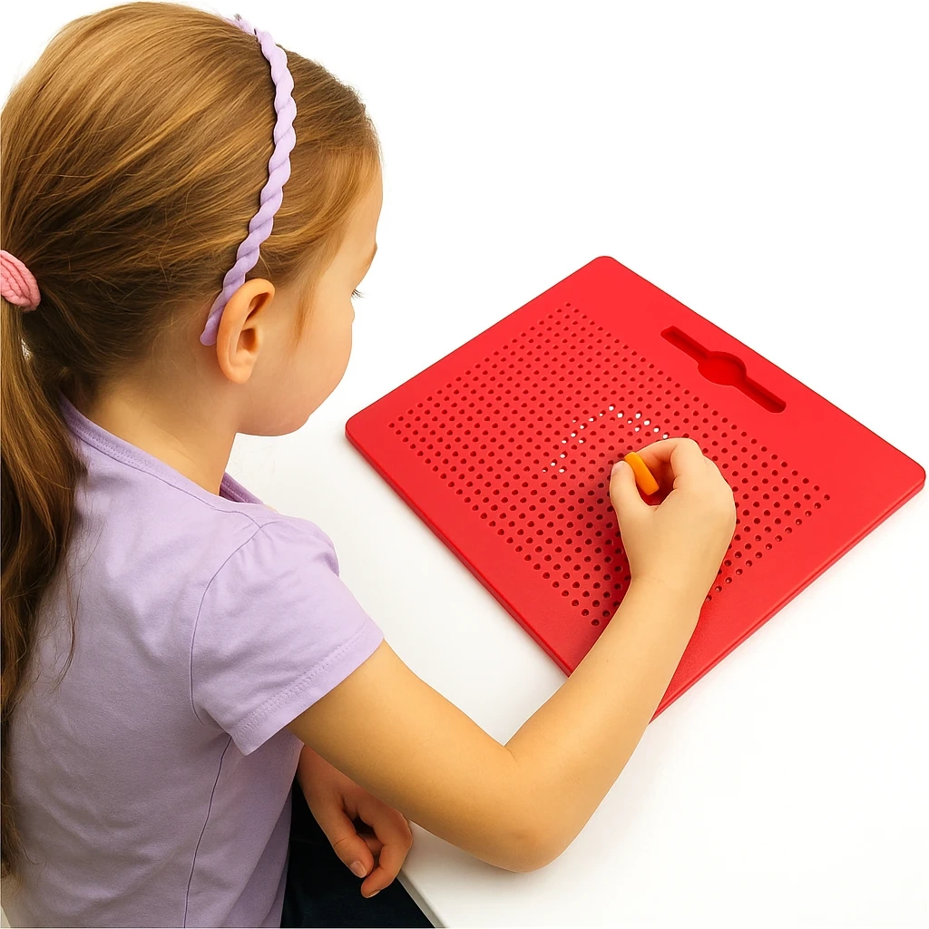 Ulepszona tablica magnetyczna w czerwieni. Więcej kulek, lepszy rysik, ta sama czysta zabawa.